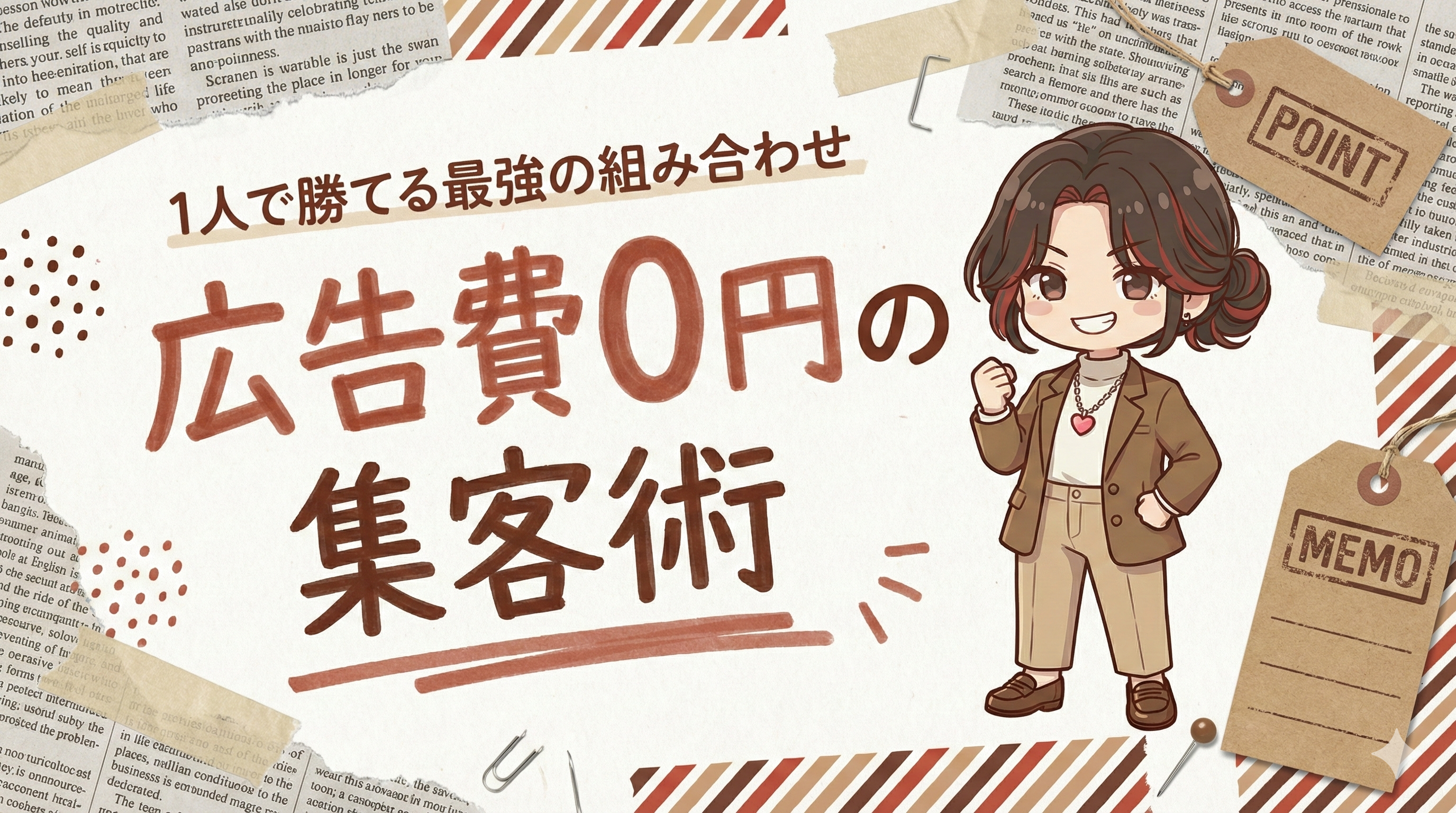 「個人事業主にとって最適な集客方法は何だろう?」 独立したばかりの個人事業主にとって、集客は最大の課題です。広告費をかけられない状況で、いかに効率的にお客様を集めるかが事業の成否を分けます。 しかし、集客方法は数多く存在し、すべてを同時にやるのは現実的ではありません。自分に合った方法を選び、集中的に取り組むことが重要です。 この記事では、個人事業主が低コストで始められる集客方法を網羅的に解説します。読み終えた後には「自分はまずこれから始めよう」と明確に判断できるはずです。 【...